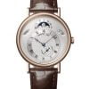 Vỏ bằng vàng hồng 18kt được đánh bóng có viền chữ ký Breguets. Mặt số màu bạc với nhiều mẫu guilloche. Mặt số làm từ vàng trắng 18kt nguyên khối. Thời gian được biểu thị bằng một mặt số lệch tâm với các vạch chỉ giờ Chữ số La Mã được in màu đen tinh xảo. Mặt số phụ giây nhỏ lệch tâm ở vị trí 5 giờ. Chiếc đồng hồ Breguet Classique Day Date Moonphase sử dụng loại dây cá sấu cao cấp.