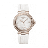 Đồng hồ Breguet Marine Automatic 33.8mm có vỏ bằng vàng 18kt được đánh bóng với đường gờ nổi đặc trưng của Breguet. Bộ vành với 50 viên kim cương cắt sáng chói chất lượng Top Wesselton VS, nặng tổng cộng +/- 1.165 cts. Bộ bảo vệ vương miện có đường viền được đính 6 viên kim cương. Mặt số Mother of Pearl với họa tiết hoa văn marea.