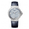Bộ bảo vệ vương miện có đường viền được đính 6 viên kim cương. Mặt số Mother of Pearl với họa tiết hoa văn marea. Đánh bóng bàn tay. Các mốc giờ được áp dụng.