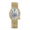 Sang trọng và quyến rũ, tạo tác gây ấn tượng với người xem nhờ ngoại hình nổi bật. Được chế tác từ vàng Gold và kim cương đều là những chất liệu quý, đắt đỏ, chiếc đồng hồ còn tạo cảm giác vô cùng nữ tính, uyển chuyển trong thiết kế. Đó là vành bezel dáng oval truyền thống lấp lánh 117 viên kim cương cả trong mặt số lẫn bề mặt.