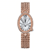 Bên cạnh những viên kim cương nhỏ bé kia, chiếc Breguet Reine de Naples Automatic Mini Ladies còn có thêm một viên kim cương khá lớn, đặt trên núm vặn chỉnh giờ. Dây đeo được thiết kế bằng những mắt xích bằng vàng hồng xếp đều nhau tạo cảm giác liền mạch giữa phần vỏ và dây.