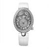 Với sự chăm sóc và độ chính xác thông thường của họ, các nhà chế tác đồng hồ của Breguet một biểu tượng của sự tinh tế nữ tính trong một chiếc đồng hồ trang sức đương đại. Vành bezel được thiết kế bằng vàng trắng với bộ mặt số bằng vàng trắng 21 carat được khắc bằng tay với 54 viên kim cương.