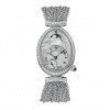 Bộ vỏ hình quả trứng có kích thước chiều dài 36.5mm và chiều rộng 28.45mm, với núm chỉnh giờ đặt ở một góc chéo thật sự lạ mắt, được trang trí thêm một viên Sapphire màu xanh lam. Núm chỉnh giờ được thiết kế theo dạng rút và chỉnh, không có phần ren xoắn vào thân vỏ giúp tăng khả năng chống nước. Tuy vậy, chiếc đồng hồ này vẫn có thể chịu được nước ở mức 3ATM, tương đương 30m. Dây đồng hồ được làm bằng vàng trắng 18k.