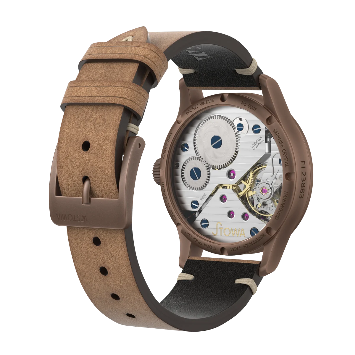 Đồng hồ phi công bằng đồng của chúng tôi với bộ máy Unitas 6498 huyền thoại: Vỏ đồng hồ phi công 41mm mới với kim giây nhỏ ở vị trí 6 giờ được hoàn thiện theo phong cách cổ điển đặc trưng của STOWA. Mặt số và kim với chất liệu phát quang radium cổ điển được phối màu hài hòa với phong cách cổ điển và làm nổi bật thiết kế tổng thể một cách ấn tượng. Bộ máy được hoàn thiện với các đường vân Geneva, và logo STOWA được khắc và mạ vàng. Bộ máy được trang bị cơ cấu điều chỉnh tinh xảo hình cổ thiên nga. Bộ phận cân bằng vít tích hợp hiếm khi được sử dụng và là một điểm đặc biệt thực sự.