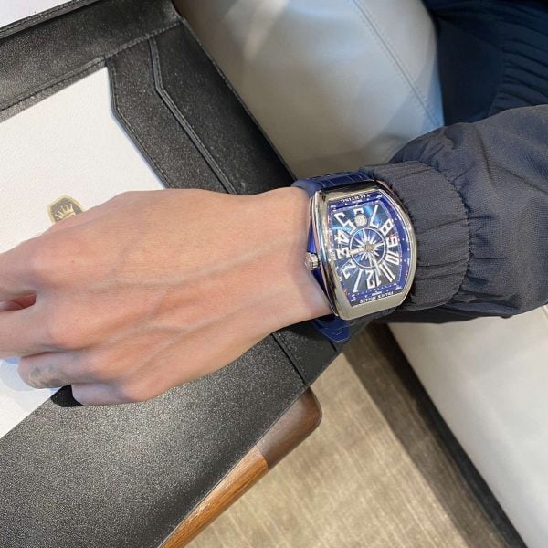 “ Nổi bật trên cổ tay anh Sắc xanh đằm thắm thôi đành chết mê” Màu xanh dương có lẽ là gam màu đẹp nhất quyến rũ nhất để chế tác mặt đồng hồ! Bởi đây là gam màu có thể “sánh duyên” với mọi loại dây, mọi bộ trang phục, mang lại một sức hút khó cưỡng! Nếu bạn chưa tin, hãy ngắm nhìn mẫu đồng hồ Franck Muller Vanguard V41 Steel Yachting Blue mặt xanh dương đẹp xiêu lòng.