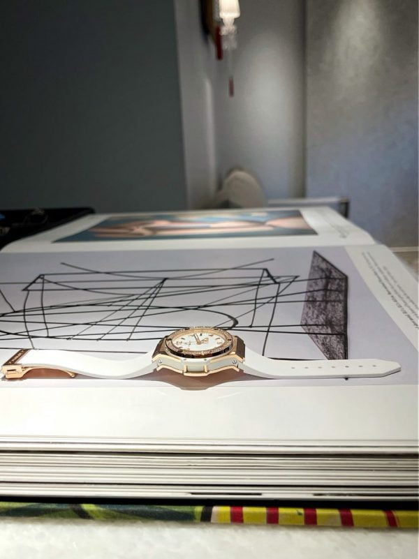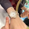 Đồng hồ có kích thước 38mm, đây là một con số khá lý tưởng đối với cổ tay nữ giới, không quá lớn nhưng vẫn đủ để nói lên sự năng động, cá tính của phái đẹp. Những viên kim cương trắng được vào vành bezel như có thêm một điểm nhấn lấp lánh trên cổ tay phái đẹp. Mặt kính đồng hồ được làm từ tinh thể sapphire trong suốt, có khả năng chống xước và chống phản quang cực tốt. Trang bị cùng mặt số đồng hồ là bộ kim chỉ giờ dáng pencil cùng những cọc số Ả Rập kết hợp cùng cách vạch chỉ giờ, tăng tính thẩm mỹ cho đồng hồ.