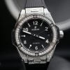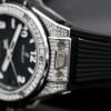Với mặt số màu đen vô cùng cá tính, tinh tế, thanh lịch cùng bộ vỏ tuyệt đẹp với 42 viên kim cương với tổng trọng lượng 1,0 carat và dây đeo bằng cao su màu đen, chiếc đồng hồ đeo tay Hublot Big Bang này nổi bật từ mọi góc độ.