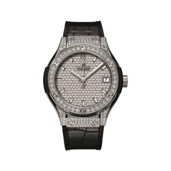Hublot Classic Fusion Black Titanium Full Diamonds 33mm là phiên bản đồng hồ tuyệt đẹp, mang một sức hút khó cưỡng cho bất cứ ai nhìn thấy nó. Với kích thước mặt 33mm, chiếc đồng hồ này cực kì phù hợp cho những quý cô có cổ tay nhỏ tinh tế.