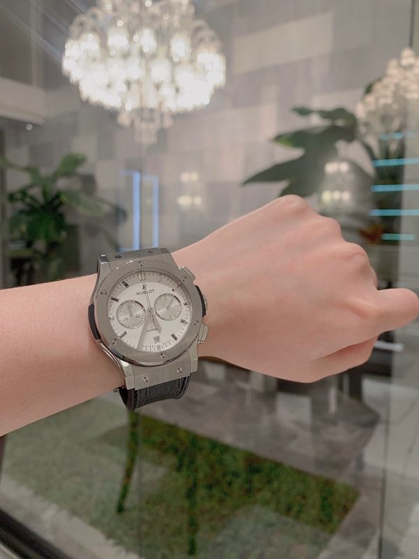 HUBLOT CLASSIC FUSION CHRONOGRAPH OPALIN TITANIUM 42mm được Hublot sản xuất trong 2 kích thước 42mm và 45mm. Nếu phiên bản 42mm được đánh giá là phi giới tính thì phiên bản 45mm sinh ra để dành riêng cho các quý ông.