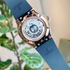 Lớp kính Sapphire chống xước được in tên và logo thương hiệu trực tiếp ở mặt sau. Bên dưới đó, chúng ta có mặt số nhiều góc cạnh, không sử dụng thiết kế phẳng như thường thấy. Cọc số và kim que đều chế tác từ vàng hồng18k, tạo nên tông màu khác biệt và rất dễ quan sát.