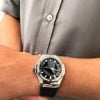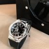 Dây đeo bên dưới bằng cao su đen mờ tạo ra một sự tương phản đáng kinh ngạc. Còn gì tuyệt vời hơn viên đá có chỉ số khúc xạ cao nhất để phản ánh bề mặt được đánh bóng gương điển hình cho tác phẩm của nghệ sĩ. Trên bốn chiếc đồng hồ, khung bezel – một dodecagon đặc trưng cho sự hợp tác sáng tạo kể từ năm 2017.