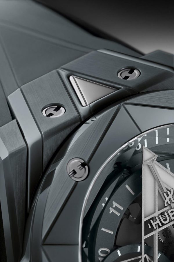 Chiếc Hublot Big Bang Sang Bleu II Grey Ceramic được trang bị kích thước khá lớn, lên tới 45mm, tuy nhiên, nó lại cực kỳ hợp lý trên cổ tay người đeo. Bộ vỏ nổi bật với rất nhiều góc cạnh, đường cắt chéo, đi kèm với màu xám hết sức cuốn hút. Về khả năng chống nước, có thể nói mẫu đồng hồ đảm bảo đúng tiêu chuẩn của một chiếc đồng hồ thể thao khi đạt mức tiêu chuẩn đến 100m.
