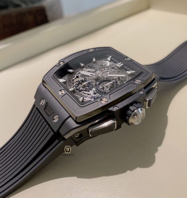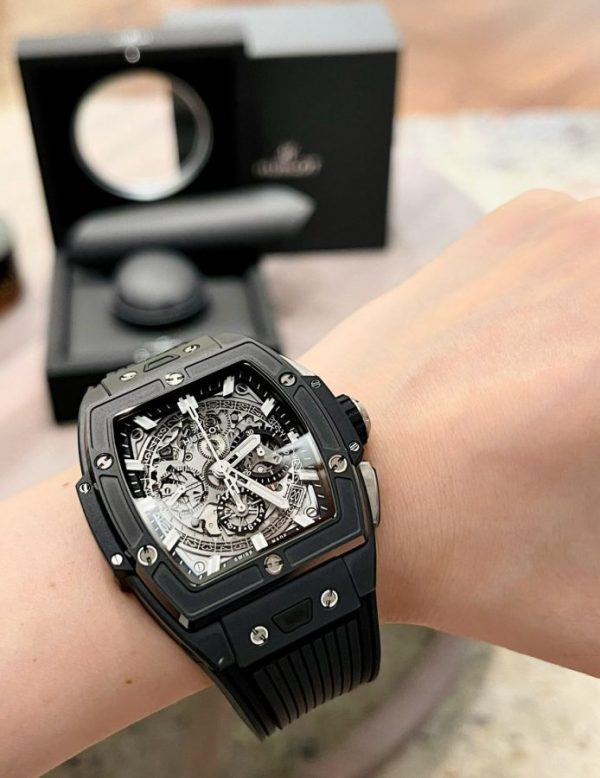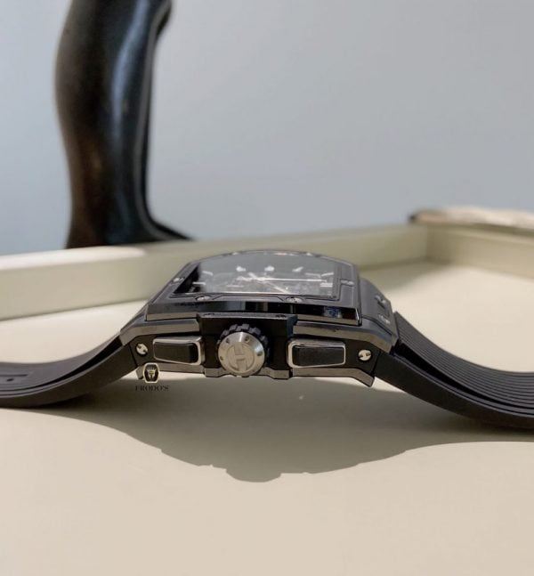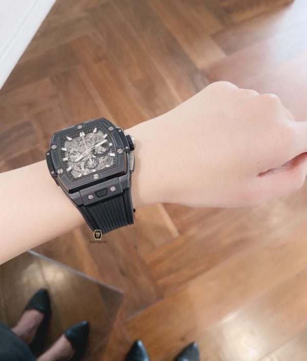 Vỏ của chiếc đồng hồ được hãng Hublot làm bằng ceramic cao cấp kết hợp cùng dây đeo tinh tế được làm từ cao su chịu nhiệt có độ bền rất cao, gần như không thể phá hủy, không thấm mồ hôi và đặc biệt rất ôm tay.