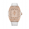 Đồng hồ HUBLOT SPIRIT OF BIG BANG KING GOLD WHITE FULL PAVÉ 39mm sở hữu bộ vỏ dáng Tonneau hình thùng được làm bằng chất liệu King Gold. Vành Bezel được đính 406 viên kim cương thiên nhiên (~1,3 ct) lấp lánh. Dây đeo da cá sấu tạo sự thoải mái và sang trọng. Bên cạnh đó, Hublot Spirit of Big Bang King Gold Full Pavé 39mm còn được trang bị bộ chuyển động HUB1710 chứa 27 chân kính, dao động ở tần số 28800 vph và có mức dự trữ năng lượng xấp xỉ 50 giờ, được tối ưu hoá hoàn toàn khi có độ kháng nước cực kỳ cao lên đến 100m.