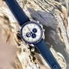 Tuy nhiên, điểm đặc biệt không nằm ở mặt trên đồng hồ Speedmaster Silver Snoopy, mà ẩn giấu ở mặt sau. Khi bạn kích hoạt chức năng bấm giờ (chronograph), một chú chó Snoopy trong phi thuyền Apollo nhỏ xíu sẽ bay lượn vòng quanh mặt trăng.