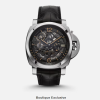 Đồng hồ có mặt lộ máy động cơ và được trang bị dây đeo da cá sấu màu đen chất liệu cao cấp, hoàn thiện tốt, ôm gọn vào tay người đeo. Chất liệu kính làm từ Sapphire đem lại khả năng chống xước, chống lóa tuyệt vời.