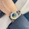 Cuối cùng, bên cạnh những chức năng kinh điển thì Patek Philippe 5231G WORLD TIME, RARE HANDCRAFTS còn thật sự bắt mắt với lớp vỏ làm từ vàng trắng 18K kết hợp cùng dây đeo làm từ da cá sấu màu xanh navi.