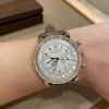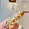 Khoác trên mình bộ vỏ tròn trang nhã mới từ chất liệu vàng hồng được đánh bóng kĩ lưỡng với đường kính 38mm, sở hữu vành bezel được nạm 72 viên kim cương tăng thêm độ quý phái sang trọng.