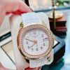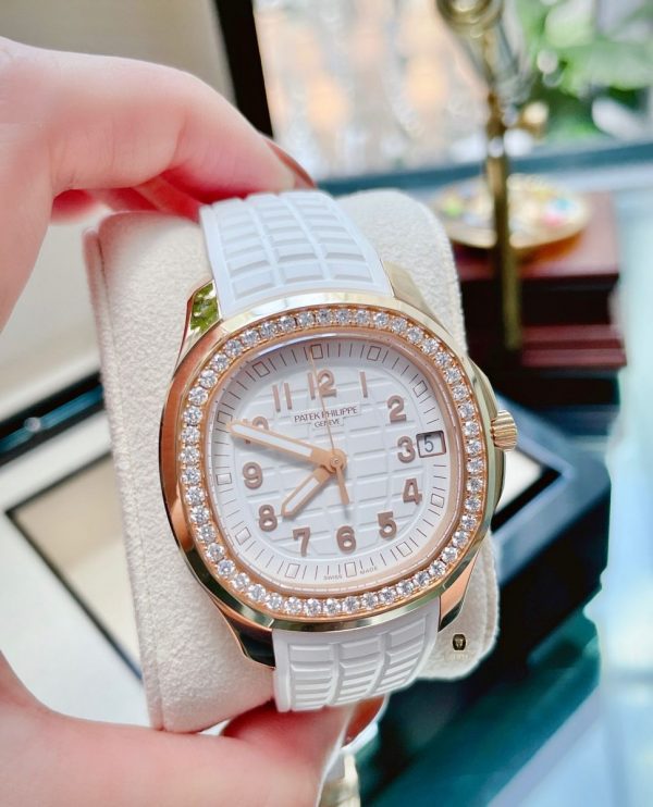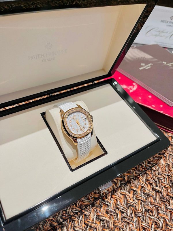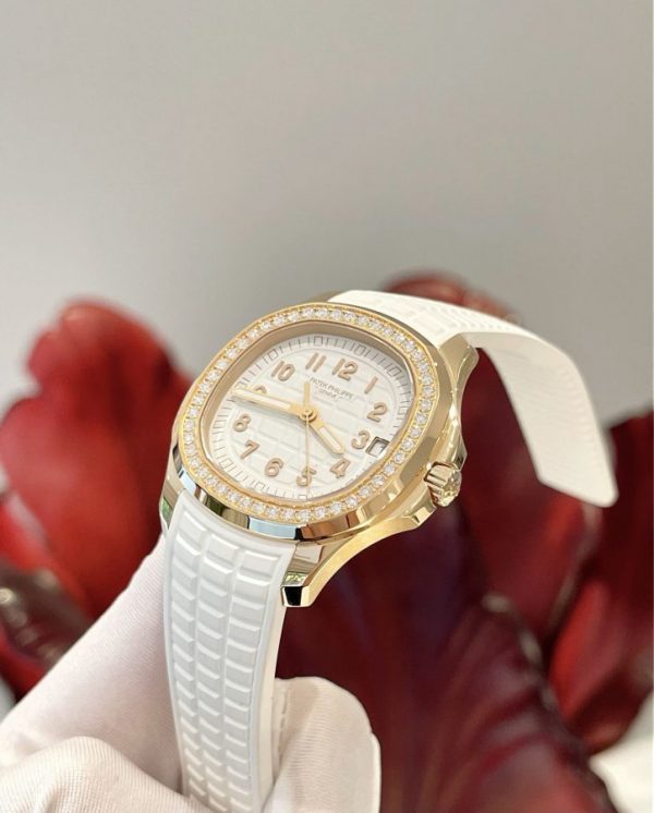 Bên cạnh sự thay đổi về kích thước, đồng hồ vẫn được thiết kế với vành bezel dáng bát giác được bo tròn tại các góc mang vẻ đẹp đặc trưng của dòng Aquanaut. Góp phần tạo điểm nhấn hoàn hảo hơn nữa khi ngự trị trên cổ tay quý cô là 48 viên kim cương ~ 1.1 ct được đính trên vành bezel.