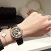 Từ vành bezel cho tới càng nối dây, Patek Philippe chỉ duy trì kỹ thuật đánh bóng khó khăn này. Dây đeo trên chiếc Calatrava 6000R-001 được sử dụng là dây da cá sấu trong màu nâu với những đường chỉ khâu tay cản trọng và tỉ mỉ hướng đến vẻ đẹp hoàn hảo không tì vết. Mặt số màu nâu hiện lên với những cách hoàn thiện khác biệt, mà chỉ khi sử dụng ống kính macro mọi thứ mới thực sự rõ nét.
