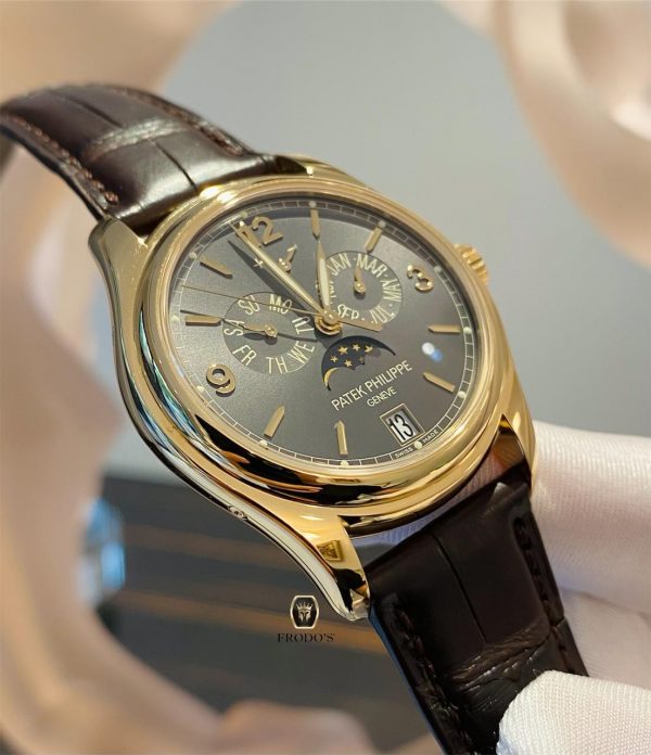 Mẫu đồng hồ Patek Philippe Complications 5146J-010 Annual Calendar Moonphase Grey Dial này sở hữu một mặt số mới lạ, và thực tế rất ít nhà sản xuất dám dùng màu xám để thiết kế cho những chiếc đồng hồ của thương hiệu mình.