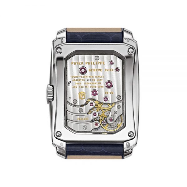 Patek Philippe Gondolo 5200G-001 18k White Gold Watch 32.4×46.9mm là chiếc đồng hồ thú vị. Thay vì vỏ tròn hay vỏ Cushion. Chiếc đồng hồ này có bộ vỏ hình chữ nhật hết sức đặc biệt. Thiết kế vỏ này khiến chúng ta liên tưởng tới những mẫu đồng hồ xuất hiện vào nửa đầu thế kỷ 20, khi phong trào Art Deco đang nở rộ. Phần cạnh bên của bộ vỏ chữ nhật được tạo hình bậc thang, giúp chiếc đồng hồ có thêm điểm nhấn thú vị.