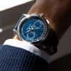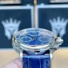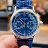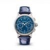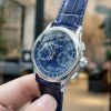 Patek Philippe Grand Complications 5370P-011 – Split-seconds trang bị bộ dây da cá sấu màu xanh bê hợp với màu xanh dương mặt số. Sự phối màu hoàn hảo có chủ đích này không chỉ giúp chủ nhân dễ dàng xem giờ, ngày, lịch, nhìn rõ các chức năng của đồng hồ mà còn khiến tổng thể vẻ ngoài đồng hồ trở nên thanh lịch, sang trọng và thể thao.
