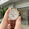 Kích thước 35,1mm của khung hoàn hảo trên cổ tay nữ giới, nhưng không vì thế mà các mặt số bên trong không có nhiều chỗ hơn để thể hiện. Kết hợp với vỏ bằng vàng hồng 18k, mặt số bên trong được làm với tông màu trắng bạc, là điểm nhấn trang nhã. Cùng với kim giờ và kim phút mảnh mai mang đến cho chiếc đồng hồ Patek Philippe Grand Complications 7140R-001 – Perpetual Calendar này một nét màu sắc tươi trẻ.