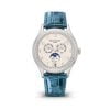 Đồng hồ được chế tác toàn bộ bằng vàng trắng 18k nguyên khối. Sử dụng dây đeo được làm từ da cá sấu. Sở hữu mặt số bạc rộng 38 mm – kích thước hoàn hảo cho các quý ông ở mọi size cổ tay. Mặt số đồng hồ được ôm trọn bởi lớp vỏ làm từ vàng trắng 18k nguyên khối vát tròn.