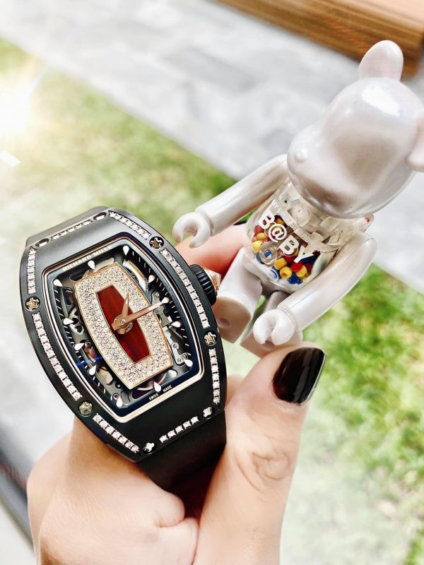 Những chiếc đồng hồ của Richard Mille luôn có bộ vỏ Tonneau to bản, nổi bật đi kèm với thiết kế Sandwich dày bản. Chính vì vậy, nhiều người cho rằng thương hiệu này không hợp với phái nữ, không có những thiết kế đủ sự thanh lịch và tinh tế. Tuy nhiên, với mẫu đồng hồ Richard Mille RM 07-01 Black Ceramic Diamond Jasper, thương hiệu này đã chứng minh điều ngược lại.