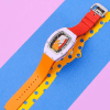 Ở trung tâm, giống như một bức tranh trên tường của viện bảo tàng, là một mảnh ghép cao su chắp vá với nhiều màu sắc và hoa văn, được tăng cường bởi hoa văn guilloche làm thủ công tỉ mỉ như một đóa hoa mạn đà la. Hai kim có các khuyên phát quang, giống như chỉ số, hiển thị giờ và phút.