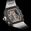 Trong tân phẩm này, bộ vỏ mang tính biểu tượng 50,12 x 42,68 x 14,3 mm của Richard Mille sẽ được định hình nhờ chất liệu Red Gold và Carbon TPT, một thành quả nghiên cứu tuyệt vời của hãng, nhẹ ngang titanium và cứng tựa kim cương.