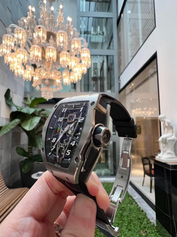 Mặt kính chất liệu Sapphire với khả năng chống sốc và chống xây xước tuyệt vời hiển thị đầy đủ các chức năng giờ, phút cơ bản. Mang kiểu dáng thùng uốn cong ôm lấy cổ tay, bộ vỏ với phần thân giật cấp thu vào bên trong tạo độ dày cho đồng hồ, đây chính là điểm nhận dạng hoàn hảo của một chiếc đồng hồ Richard Mille.