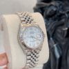 Đồng hồ Oyster Perpetual Datejust 31 bằng Thép Oystersteel và vàng trắng đi kèm mặt số mặt số vỏ trai trắng nạm kim cương và dây đeo Jubilee.