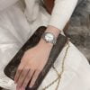 Mặt đồng hồ đi kèm khung vàng 18 ct nạm kim cương. Ngọc trai luôn mang hình ảnh huyền bí đầy bất ngờ từ chính chất liệu tự nhiên của nó. Tùy thuộc vào nguồn gốc của ngọc trai, nó có thể có màu hồng, màu trắng, màu đen hoặc màu vàng. Khác nhau về màu sắc, cường độ và cấu trúc theo các phần của vỏ mà từ đó được chiết xuất.