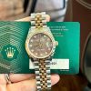 Đồng hồ Oyster Perpetual Datejust 31 bằng thép Oystersteel và vàng kim đi kèm mặt số vỏ ngọc trai đen, nạm kim cương và dây đeo Jubilee.