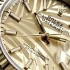 Phương pháp chải tia có khả năng bắt sáng tốt, đối nghịch với đó là bắn cát sần làm giảm khả năng bắt sáng. Khi kết hợp hai phương pháp trên, mặt số có những mảng sáng tối đối lập, có hiệu ứng hình ảnh thật sự đẹp mắt. Sau khi hoàn thiện, toàn bộ mặt số sẽ được mạ PVD với tông màu vàng Champagne truyền thống của thương hiệu Rolex, kết hợp với các chi tiết bằng vàng vàng nguyên khối.