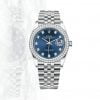 Đồng hồ Oyster Perpetual Datejust 36 bằng Thép Oystersteel và vàng trắng đi kèm mặt số màu xanh sáng, nạm kim cương và dây đeo Jubilee.