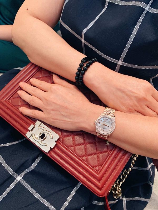 Tại Rolex, ngọc trai luôn giữ màu sắc tự nhiên, không nhuộm màu nhân tạo. Thay vào đó, bí quyết đặc biệt và sự tinh xảo chính là điểm nhấn làm nổi bật vẻ đẹp tự nhiên của ngọc trai và giữ màu sắc nguyên bản. Vì chất liệu ngọc trai của mặt đồng hồ luôn độc đáo, nên bạn sẽ không tìm được mặt đồng hồ tương tự trên tay bất kỳ ai khác.