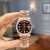 Đồng hồ Oyster Perpetual Day-Date 36 bằng vàng Everose 18 ct với mặt số màu nâu ombre, nạm kim cương, vành đồng hồ dạng rãnh và dây đeo President.