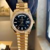 Đồng hồ Oyster Perpetual Day-Date 40 bằng vàng kim 18 ct với mặt số màu đen sáng, nạm kim cương, vành đồng hồ Nạm kim cương và dây đeo President.