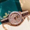 Đây là mẫu đồng hồ rolex nữ hoàn thiện độ hoàn mỹ của bộ khung vỏ là dây đeo President là kiệt tác nghệ thuật về cả hình thức lẫn tính năng. Với thiết kế được trang bị khóa Crownclasp cùng với khớp nối được hoàn thiện vô cùng tỉ mỉ. Mặt số đồng hồ khảm trai nạm kim cương lấp lánh điểm tô những họa tiết bươm bướm tinh tế khiến tổng thể sản phẩm trở nên lộng lẫy, kiêu sa là một ví dụ điển hình.