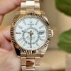 Oyster Perpetual Sky-Dweller bằng vàng Everose 18 ct với mặt đồng hồ màu trắng tinh khiết và dây đeo Oyster.