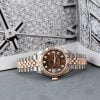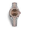 Oyster Perpetual Lady-Datejust bằng thép Oystersteel và vàng Everose đi kèm mặt đồng hồ màu sô-cô-la, nạm kim cương và dây đeo Jubilee.