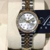 Oyster Perpetual Lady-Datejust bằng thép Oystersteel và vàng kim đi kèm mặt đồng hồ màu bạc, nạm kim cương và dây đeo Jubilee.