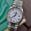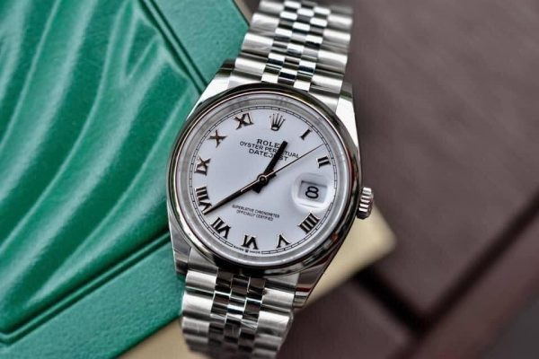 Đồng hồ Oyster Perpetual Datejust 36 bằng thép Oystersteel đi kèm mặt số màu trắng và dây đeo Jubilee.