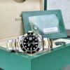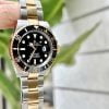 Oyster Perpetual Submariner Date bằng thép Oystersteel và vàng kim với miếng đệm vành đồng hồ Cerachrom bằng gốm màu đen và mặt đồng hồ màu đen có vạch dấu giờ phát quang lớn.